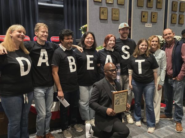 Now, Suggs continues to help mentor young people and has earned many awards for his community service. Suggs had a cheering section that showed support by wearing customized t-shirts spelling “DA BEAST,” a nickname that he gave himself after not liking the ones his coaches came up with.